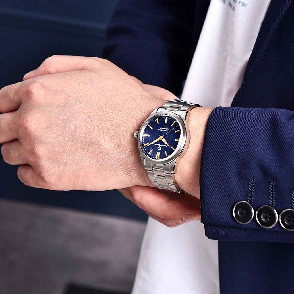 Entdecken Sie die zeitlose Eleganz der importierten Pagani Design Nocturne Blue Herrenuhr.