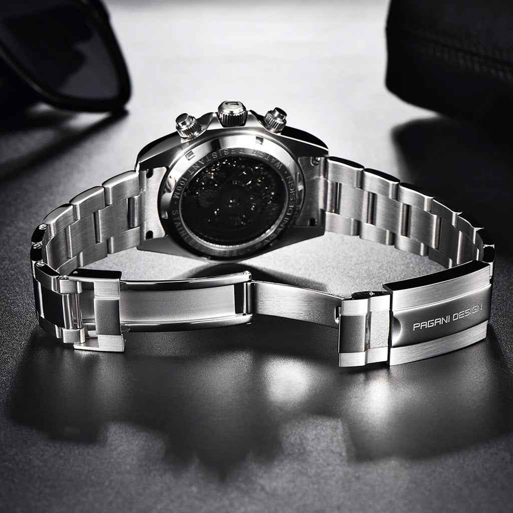 Die Pagani Design Numerus Azur ist bis 100 Meter wasserdicht und bietet Sicherheit sowie Gelassenheit bei allen Wasseraktivitäten. Die verschraubte Krone sorgt für eine vollständige und zuverlässige Abdichtung.