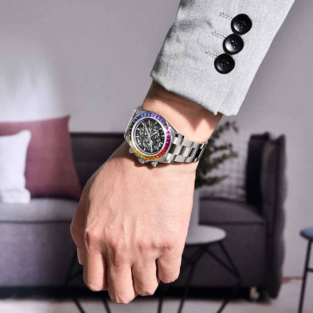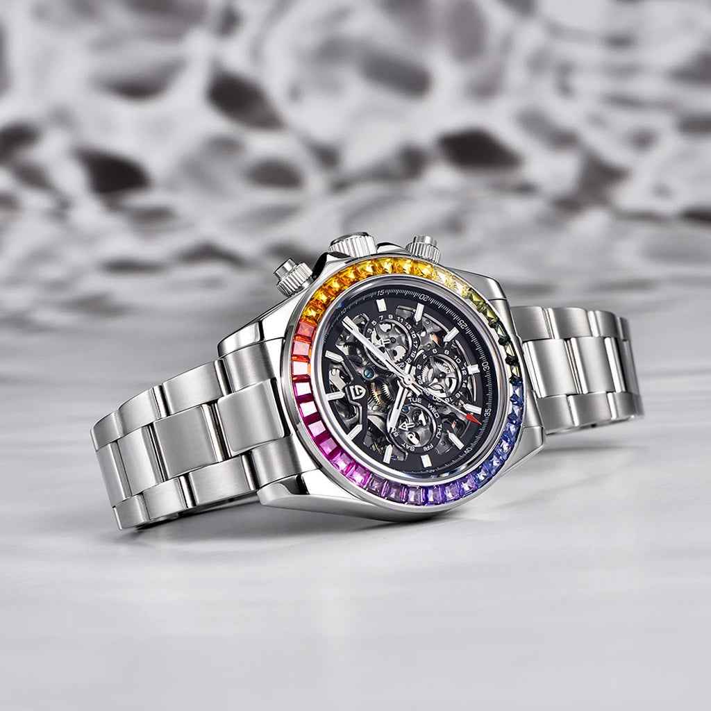 Die Pagani Design Numerus Azur ist mit Saphirglas ausgestattet – eines der edelsten Materialien der Haute Horlogerie, geschätzt für seine außergewöhnliche Härte, Transparenz und Langlebigkeit.