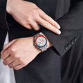 A pulseira do Pagani Design Opulentis Blue and Red é cuidadosamente projetada com materiais premium, combinando a resistência e leveza do aço inoxidável 316L. Proporciona um conforto incomparável e uma sensação única de estar usando um relógio quase imperceptível no pulso.