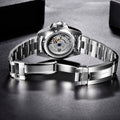 A pulseira do Pagani Design Opulentis Nero é cuidadosamente projetada com aço inoxidável 316L, combinando a resistência do aço e a leveza do material. Proporciona um conforto incomparável e uma sensação única de estar usando um relógio quase imperceptível no pulso.