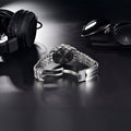 O relógio Pagani Design Pilot Black utiliza vidro sintético de safira, um dos materiais mais prestigiados no mundo da alta relojoaria, conhecido por sua transparência e durabilidade excepcionais.