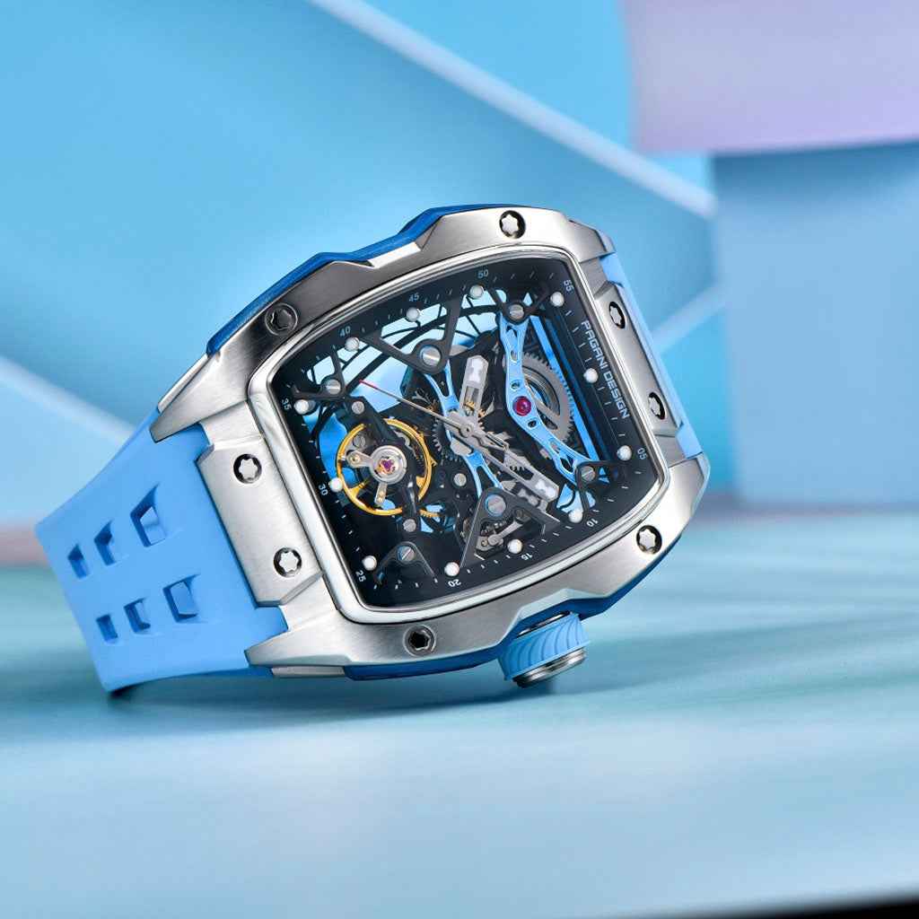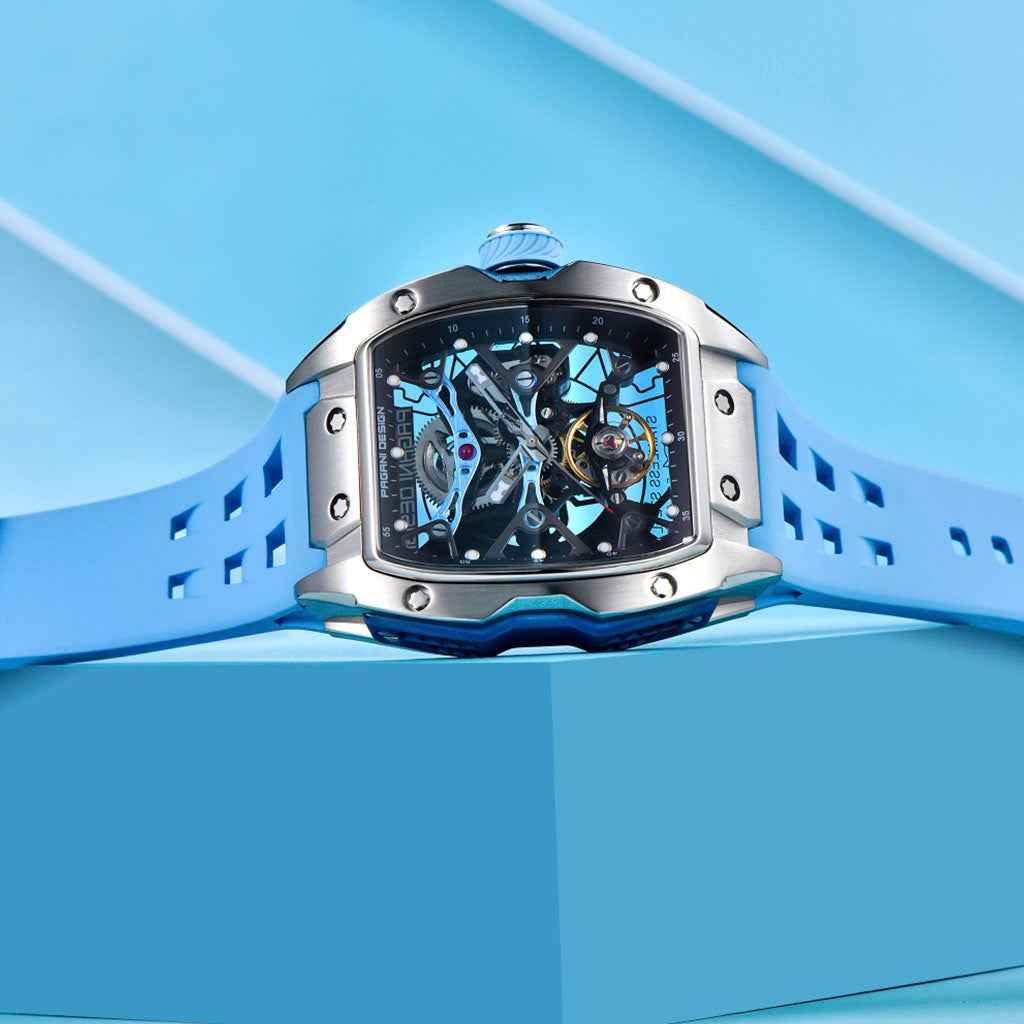 A pulseira do Pagani Design Birmingham Black é cuidadosamente projetada com materiais premium, com toda a resistência e leveza do FKM. Proporciona um conforto incomparável e uma sensação única de estar usando um relógio quase imperceptível no pulso.
