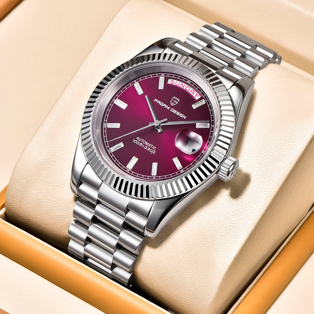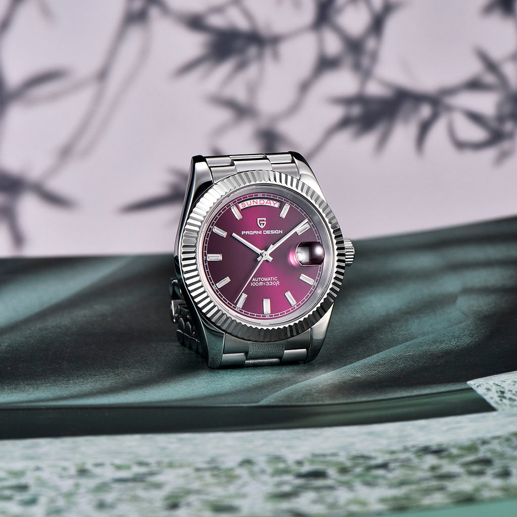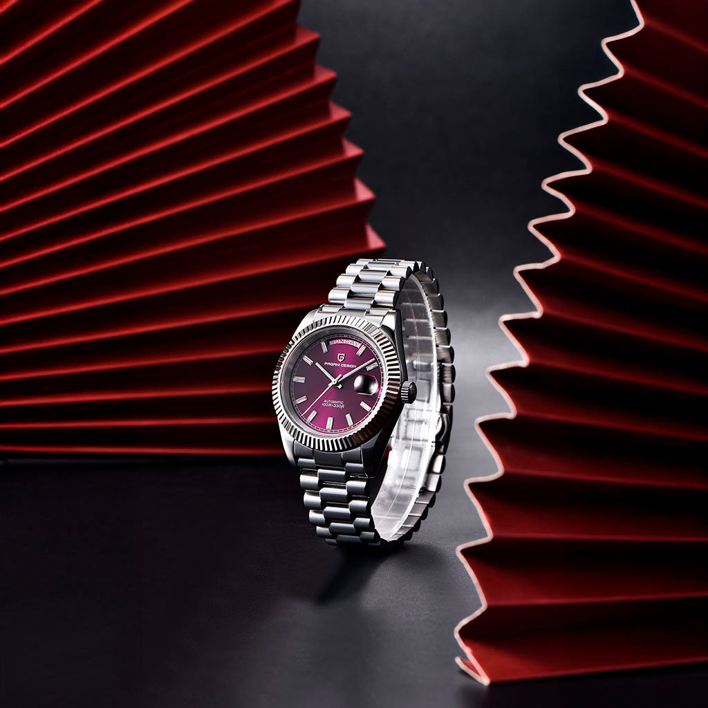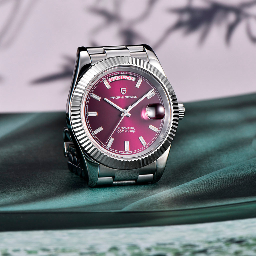 Das Seiko NH35A-Uhrwerk ist eine verfeinerte Version des NH25 und bekannt für außergewöhnliche Präzision und Zuverlässigkeit. Der Pagani Design Rubensberg, ausgestattet mit dem Kaliber NH35A, verfügt über eine beeindruckende Gangreserve von ca. 45 Stunden.