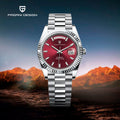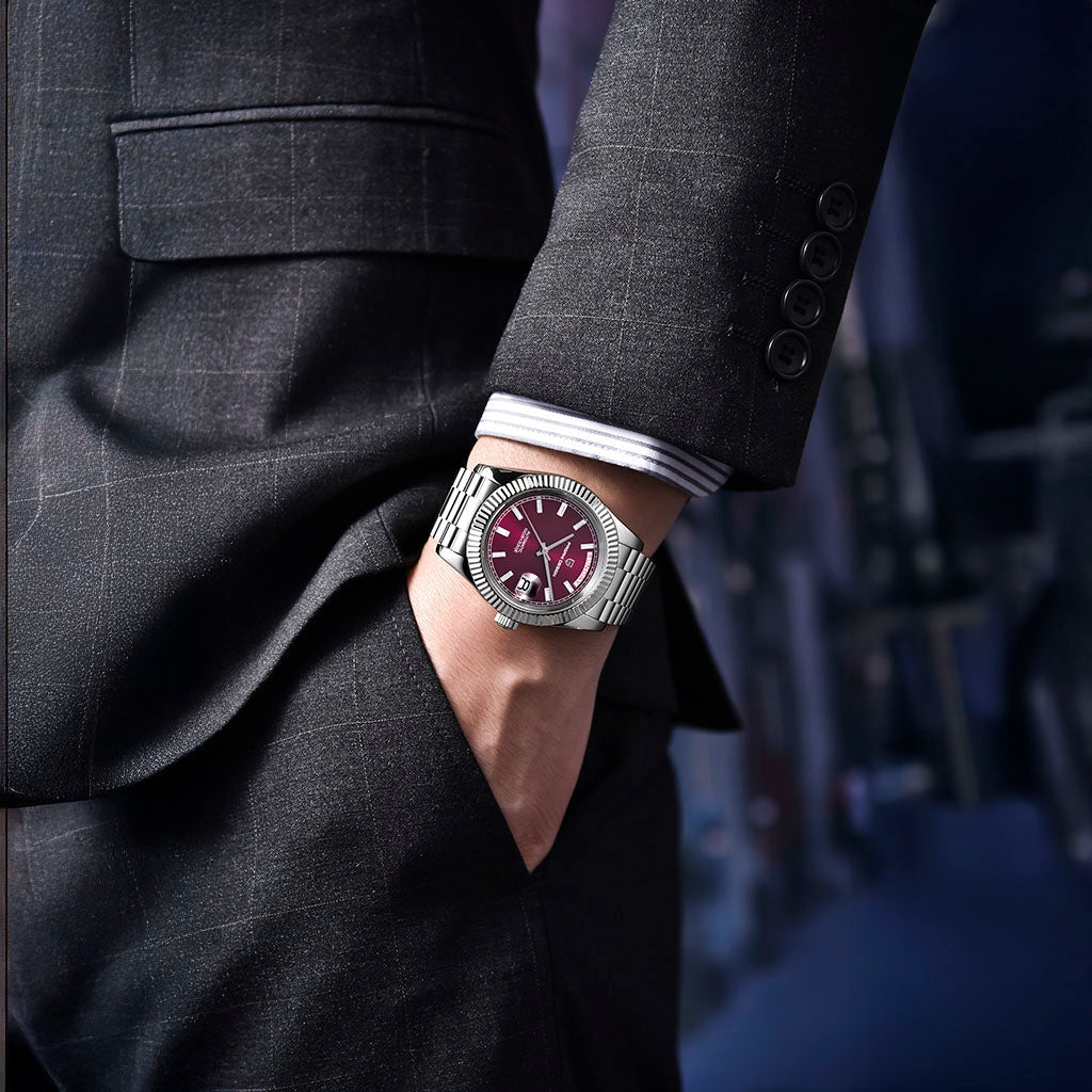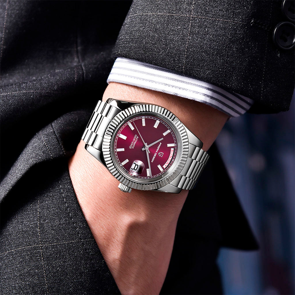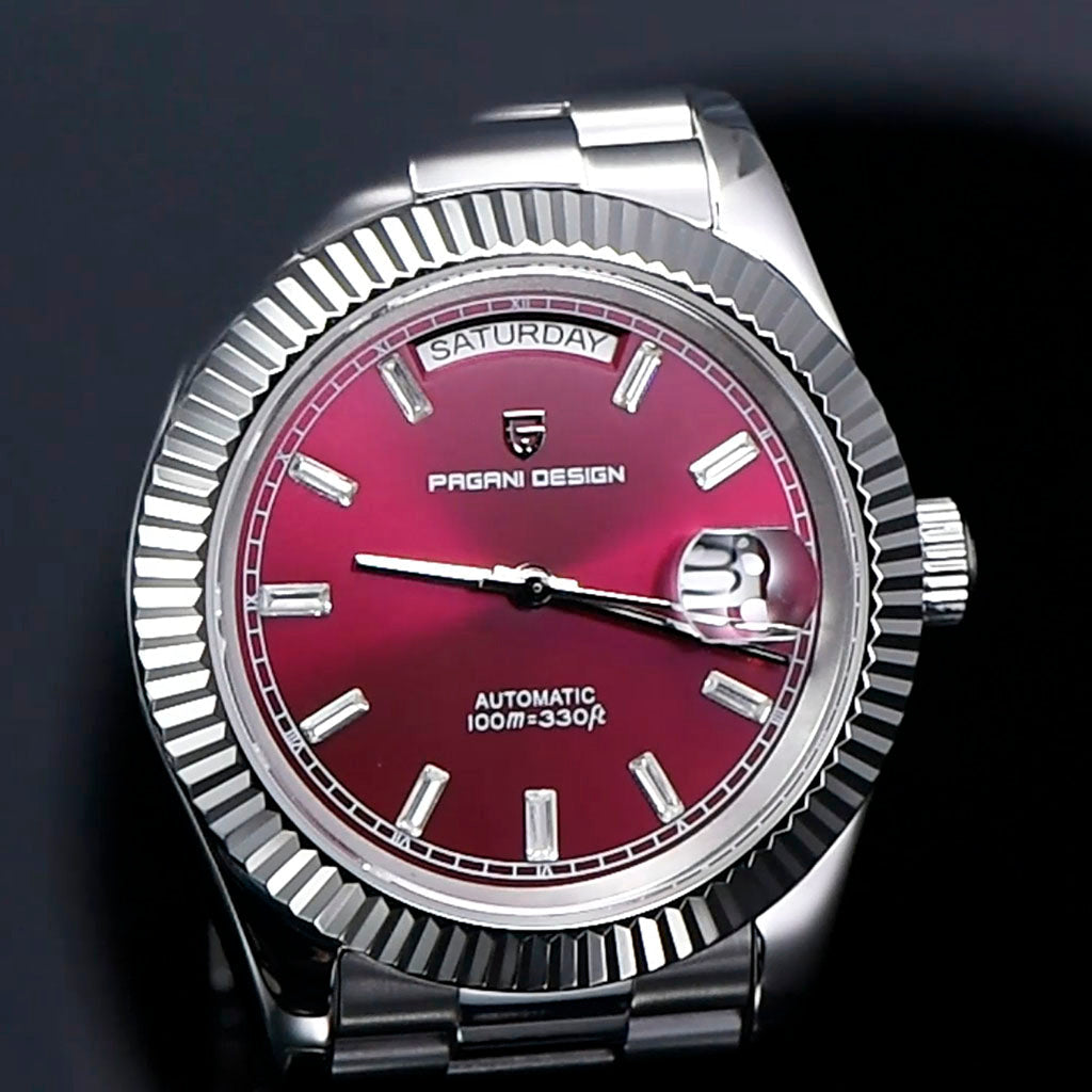 Das Seiko NH35A-Uhrwerk ist eine verfeinerte Version des NH25 und bekannt für außergewöhnliche Präzision und Zuverlässigkeit. Der Pagani Design Rubensberg, ausgestattet mit dem Kaliber NH35A, verfügt über eine beeindruckende Gangreserve von ca. 45 Stunden.