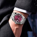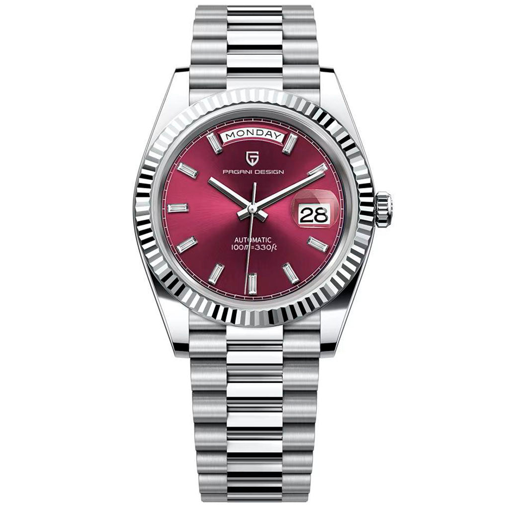 Das Armband des Pagani Design Rubensberg ist mit höchster Präzision aus edlen Materialien gefertigt und kombiniert die Widerstandsfähigkeit von 316L-Edelstahl mit Leichtigkeit. Es bietet unvergleichlichen Tragekomfort und das exklusive Gefühl, eine Uhr zu tragen, die am Handgelenk kaum spürbar ist.