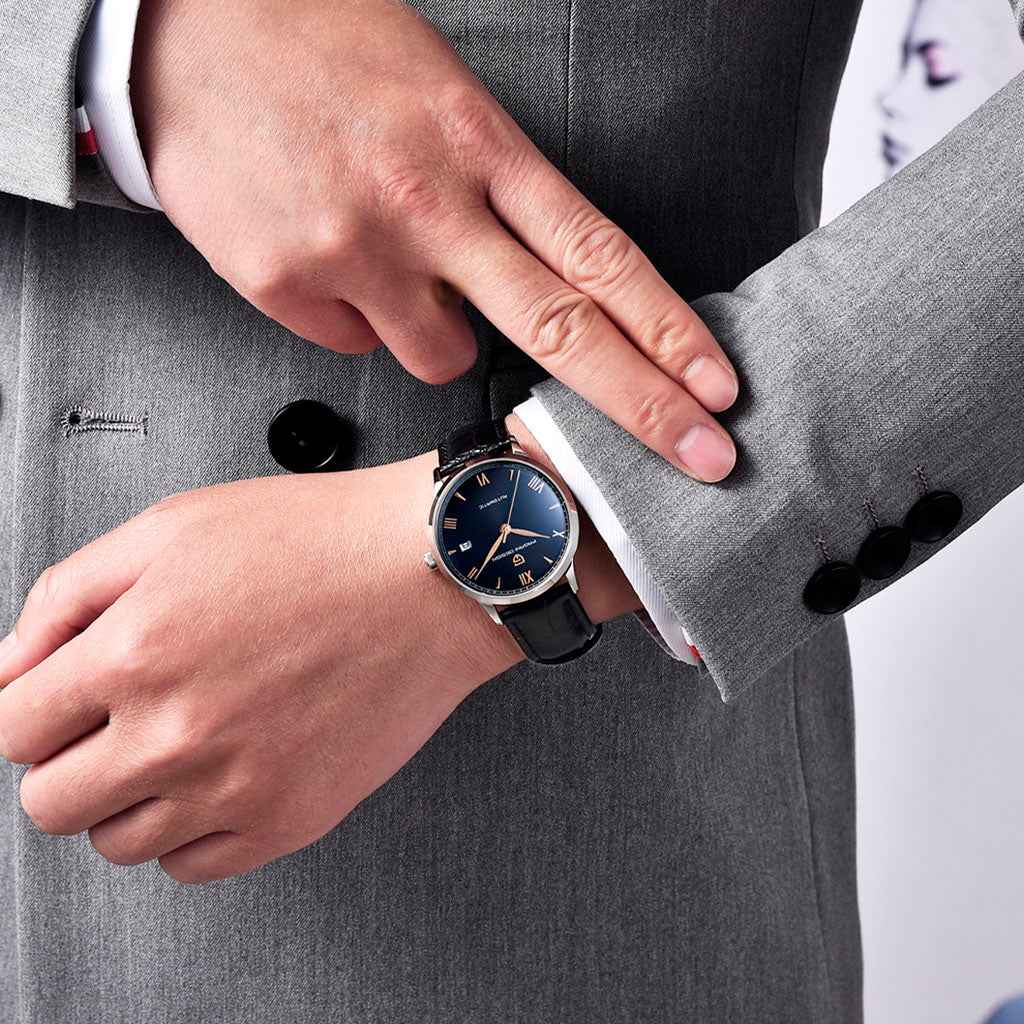 Die Uhr ist bis zu 100 Metern wasserdicht und bietet Vertrauen und Gelassenheit bei sämtlichen Wasseraktivitäten. Die Krone des Pagani Design Sofia Alba ist so konstruiert, dass sie eine vollständige und sichere Abdichtung gewährleistet. Weitere Details finden Sie in der Bedienungs- und Garantiedokumentation.