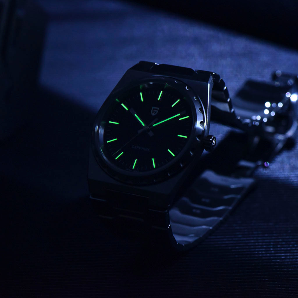 Die Pagani Design Sonnenberg Silver White ist mit synthetischem Saphirglas ausgestattet – einem der edelsten Materialien der Haute Horlogerie, bekannt für seine außergewöhnliche Transparenz und Robustheit.