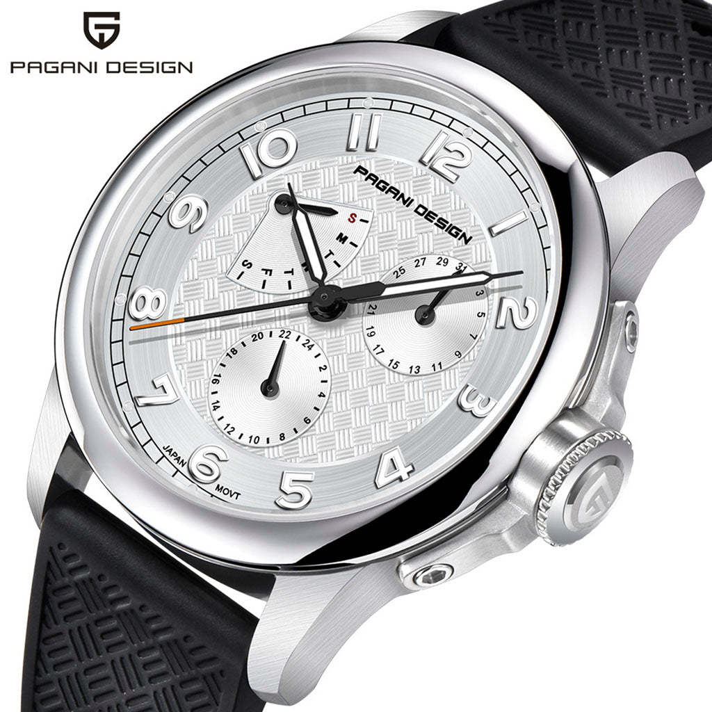 Erwerben Sie Ihre Pagani Design Sovereign Noir in unserem Shop und erhalten Sie eine exklusive Verpackung. Diese Uhr ist die ideale Wahl für alle, die höchste Qualität und Eleganz verlangen. Investieren Sie in die Pagani Design Sovereign Noir und erleben Sie Exzellenz in jedem Detail.