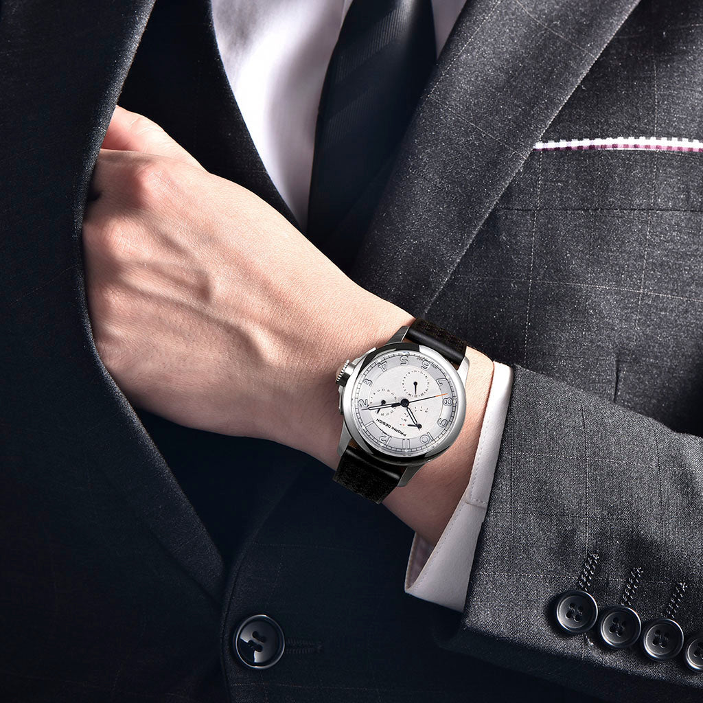 Die Uhr ist bis zu 100 Metern wasserdicht und garantiert absolute Sicherheit und Gelassenheit bei allen Wasseraktivitäten. Die verschraubte Krone der Pagani Design Sovereign Noir sorgt für eine perfekte und zuverlässige Abdichtung. Weitere Informationen finden Sie in der Bedienungsanleitung und Garantie.