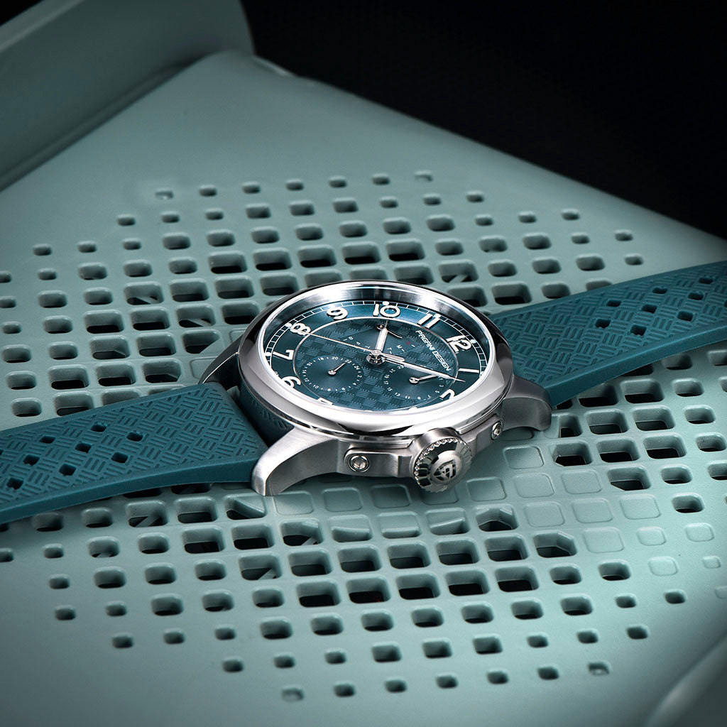 Das Armband der Pagani Design Tide Blanc ist aus hochwertigem Kautschuk gefertigt und vereint Widerstandsfähigkeit mit Leichtigkeit. Es bietet unvergleichlichen Tragekomfort und vermittelt das Gefühl, eine fast schwerelose Uhr am Handgelenk zu tragen.