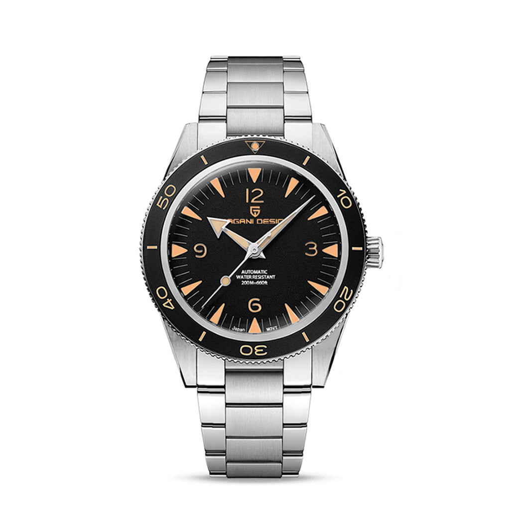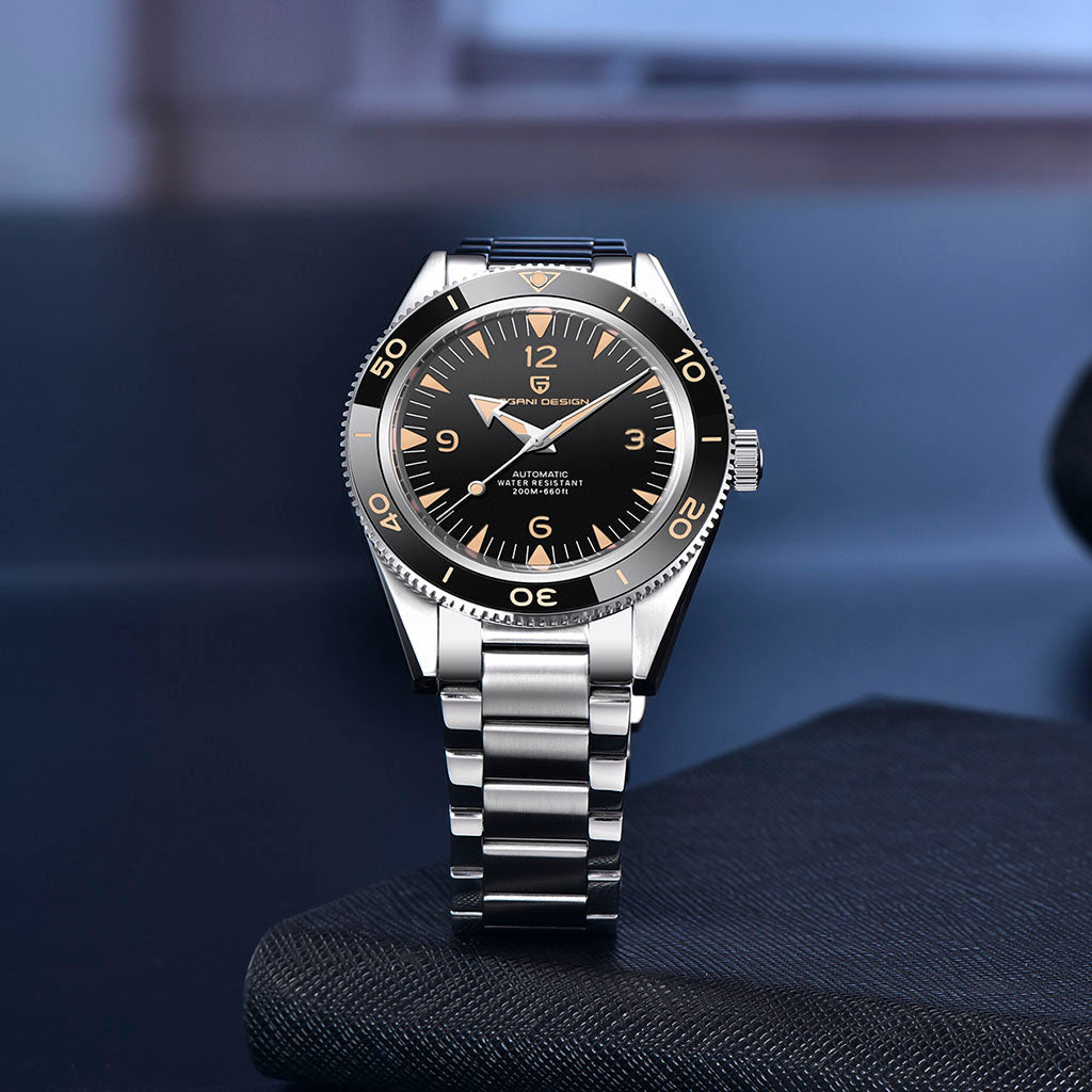 Das Seiko NH35A-Werk ist berühmt für seine außergewöhnliche Präzision und Zuverlässigkeit. Die Pagani Design Titan Chrono, ausgestattet mit diesem Kaliber, gewährleistet einen geschmeidigen und präzisen Lauf.