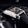 Das Gehäuse der Pagani Design Tourbillon Argent Noctis besteht aus 316L-Edelstahl, einem hypoallergenen, korrosionsbeständigen Material, das außergewöhnliche Beständigkeit, Glanz und Haltbarkeit bietet.