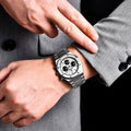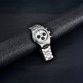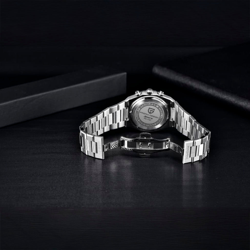 Das Armband der Pagani Design Track Blanc ist aus hochwertigem Edelstahl 316L gefertigt und vereint Robustheit mit Leichtigkeit. Es bietet unvergleichlichen Tragekomfort und das Gefühl, eine fast schwerelose Uhr am Handgelenk zu tragen.