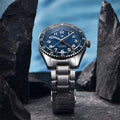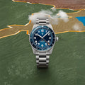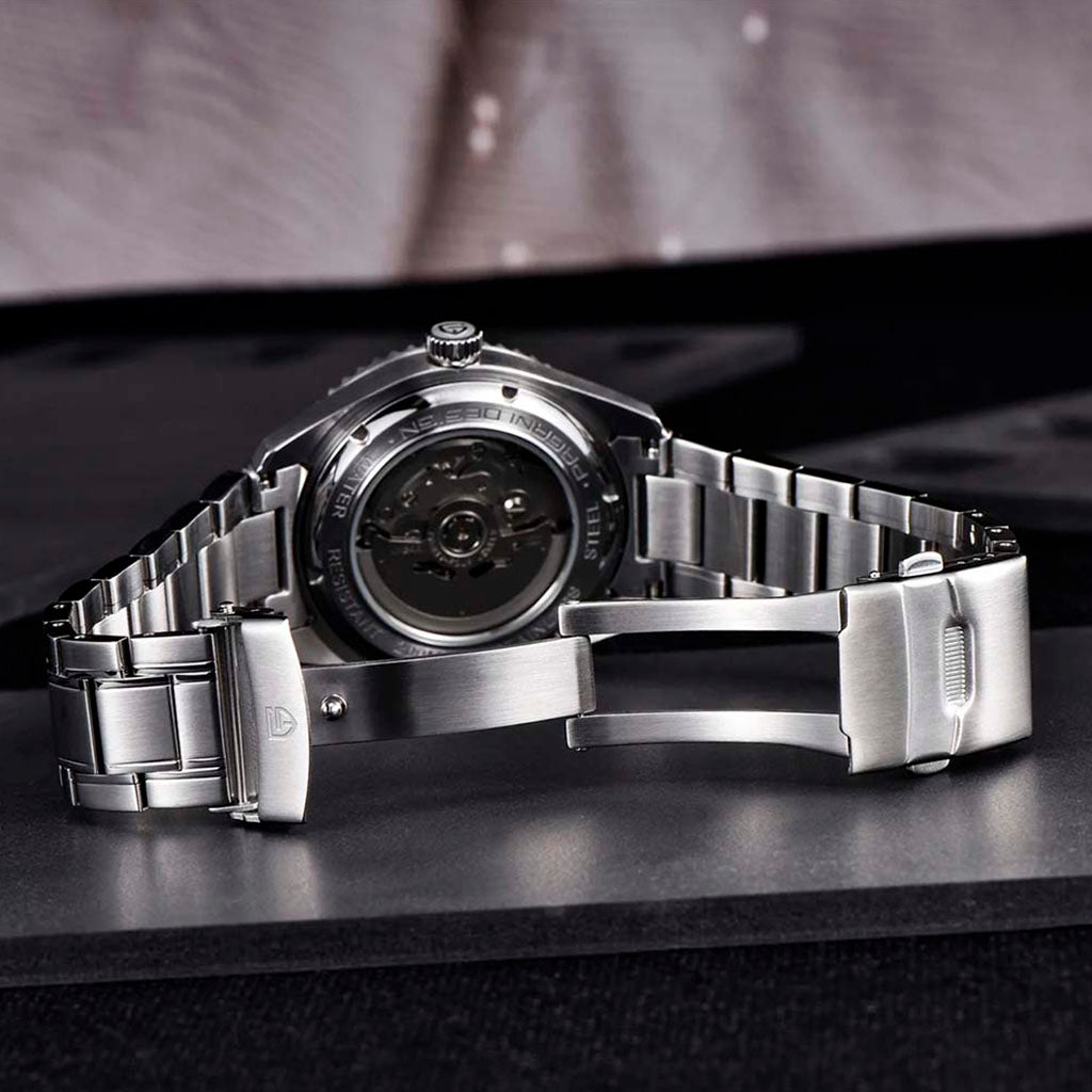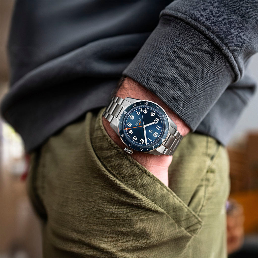 A pulseira do Pagani Design Trailblazer Blue é cuidadosamente projetada com aço inoxidável 316L, combinando a resistência do aço e a leveza do material. Proporciona um conforto incomparável e uma sensação única de estar usando um relógio quase imperceptível no pulso.