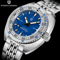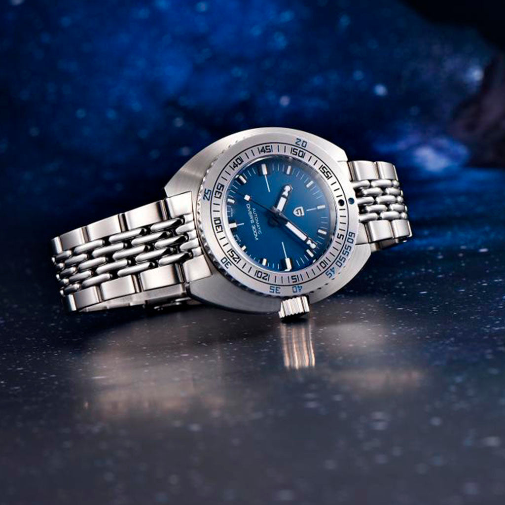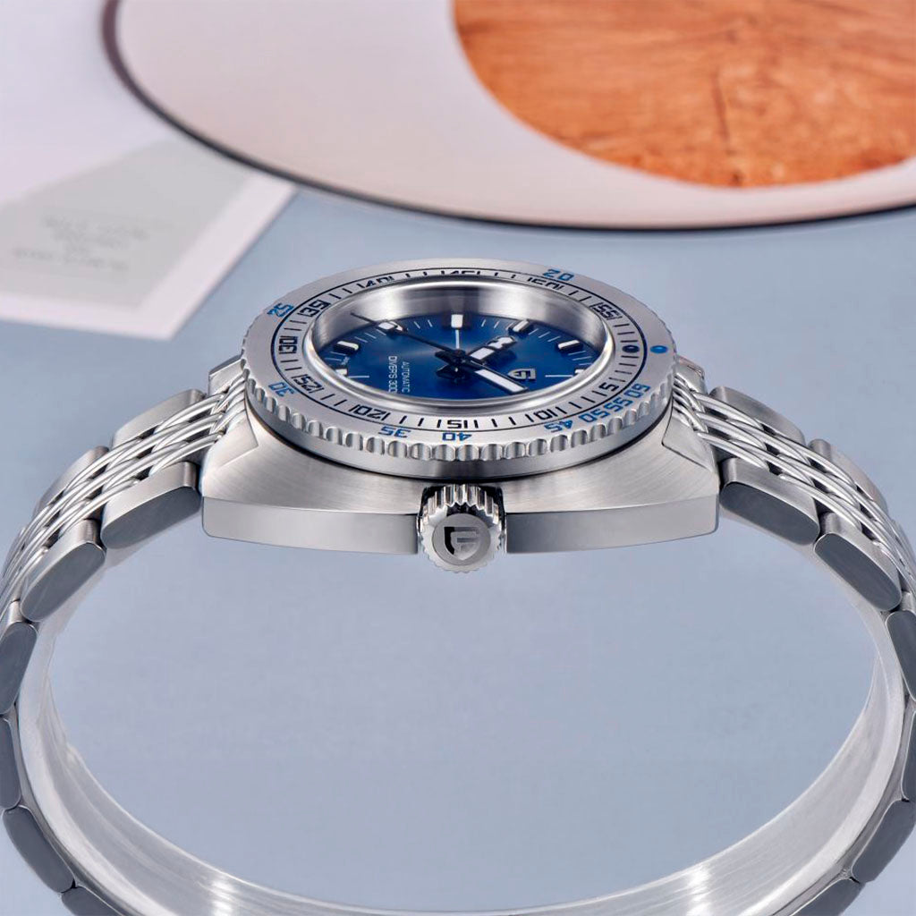 Das Armband der Pagani Design Turtle Azura ist aus hochwertigem Edelstahl 316L gefertigt und vereint Robustheit mit bemerkenswerter Leichtigkeit. Es bietet unvergleichlichen Komfort und das Gefühl, eine Uhr zu tragen, die am Handgelenk kaum spürbar ist.