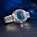 Die Uhr ist bis zu 300 Metern wasserdicht und garantiert absolute Sicherheit sowie Gelassenheit bei Tauch- und Wasseraktivitäten. Die verschraubte Krone der Pagani Design Turtle Azura sorgt für eine kompromisslose Abdichtung. Weitere Details finden Sie im Benutzer- und Garantiehandbuch.
