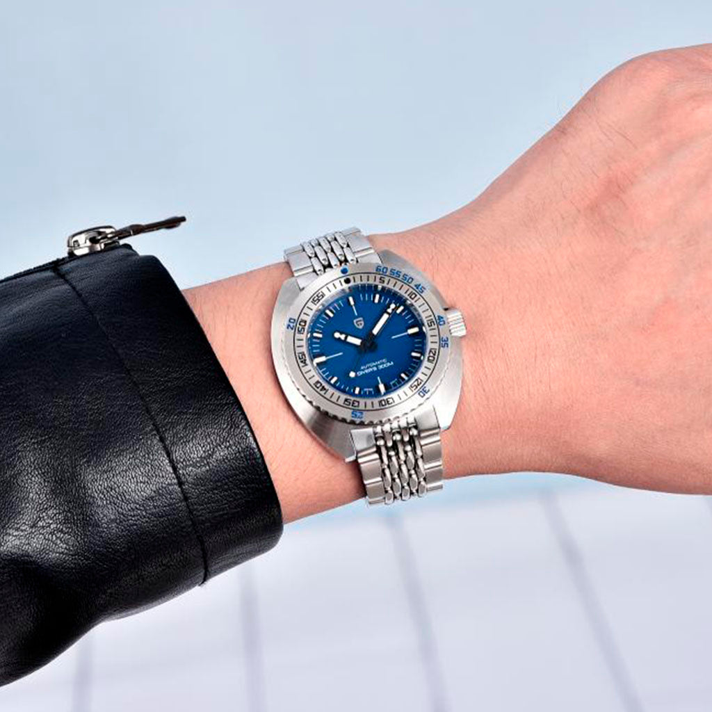 Das Seiko NH38A Uhrwerk ist weltbekannt für seine Präzision und Zuverlässigkeit. Die Pagani Design Turtle Azura, ausgestattet mit diesem Mechanismus, überzeugt mit einer harmonisch fließenden Bewegung und einer Gangreserve von etwa 45 Stunden.