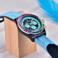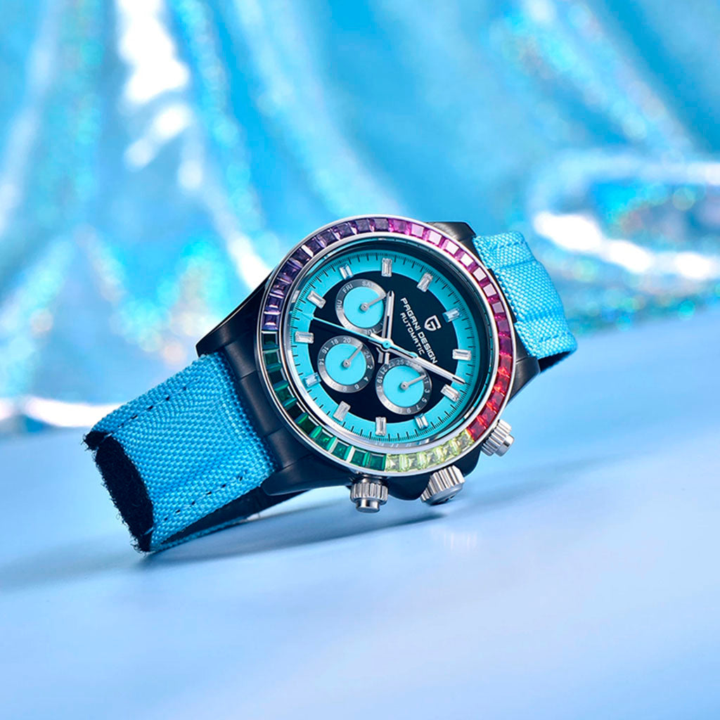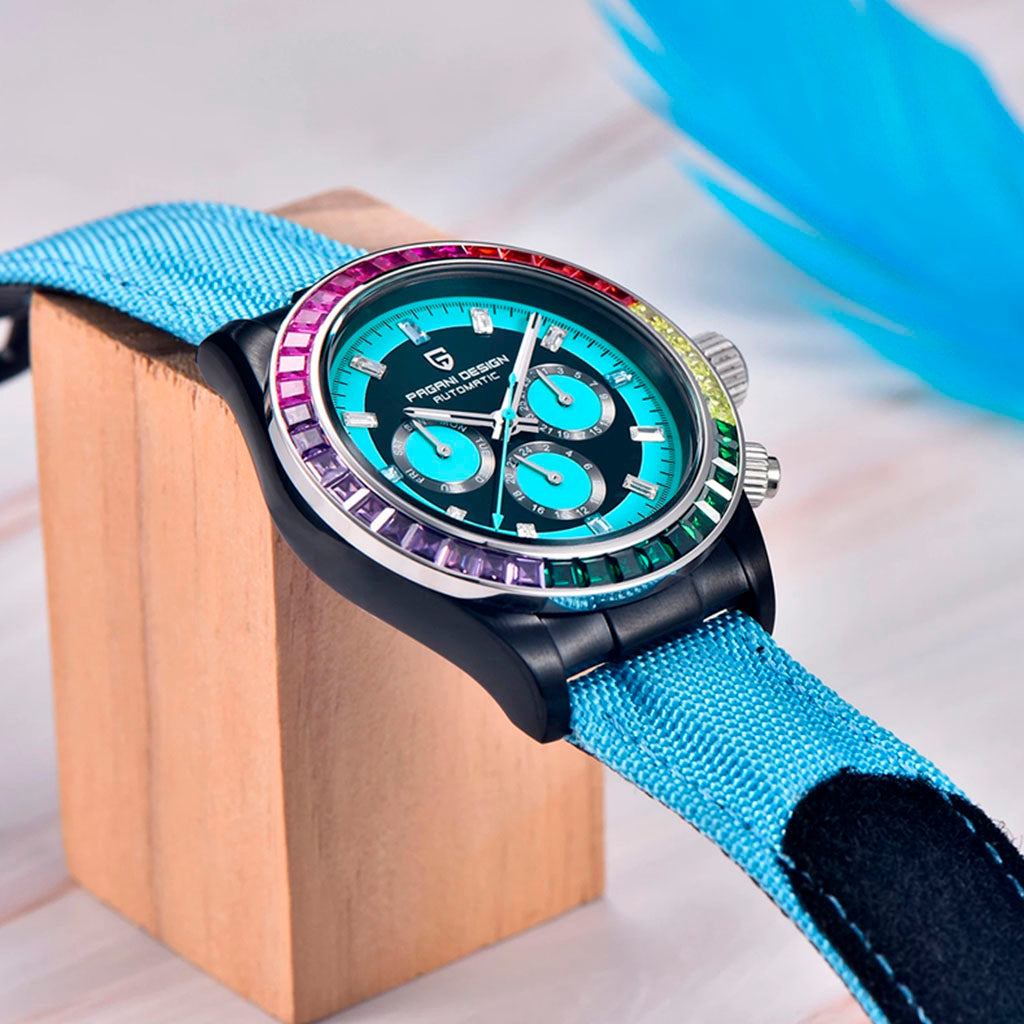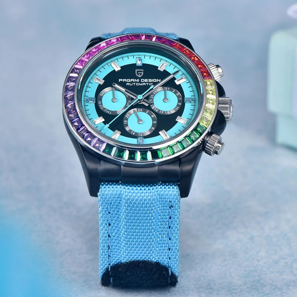 A pulseira do Pagani Design Valencia Forte é cuidadosamente projetada com materiais premium, combinando a resistência do nylon e a leveza da borracha. Proporciona um conforto incomparável e uma sensação única de estar usando um relógio quase imperceptível no pulso.