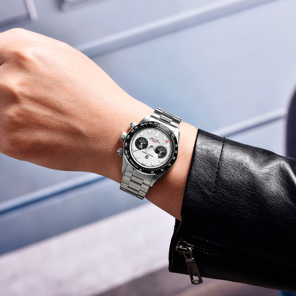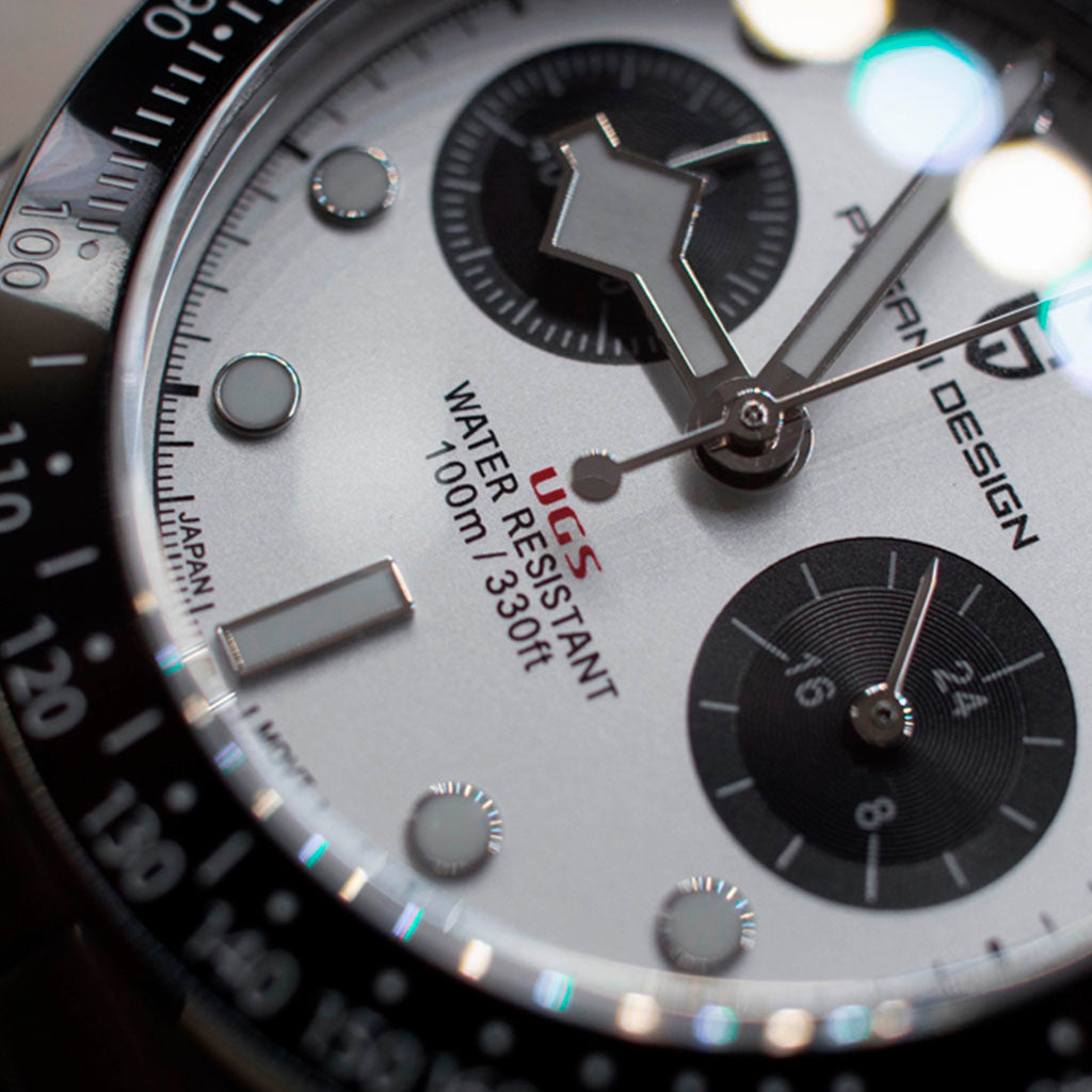 Das Seiko VK34-Uhrwerk ist bekannt für seine außergewöhnliche Leistung in Bezug auf Präzision und Zuverlässigkeit. Die Pagani Design Veraci Argent, ausgestattet mit dem VK34, bietet überlegene Genauigkeit und Funktionalität.