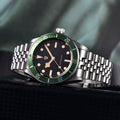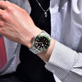 Das Armband der Pagani Design Veraci Argent Viridis ist sorgfältig aus 316L-Edelstahl gefertigt und vereint Robustheit mit Leichtigkeit. Es bietet unvergleichlichen Tragekomfort und das Gefühl, fast keine Uhr am Handgelenk zu tragen.
