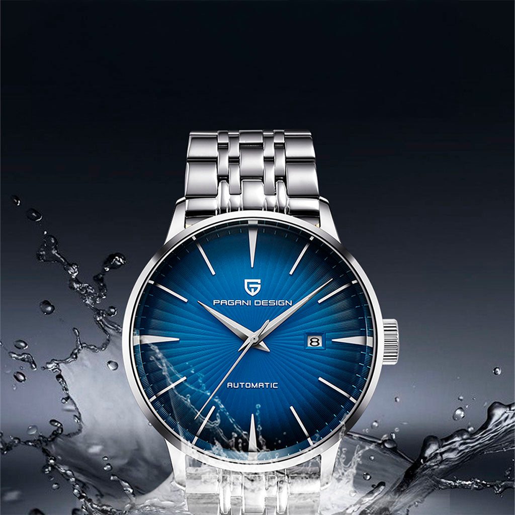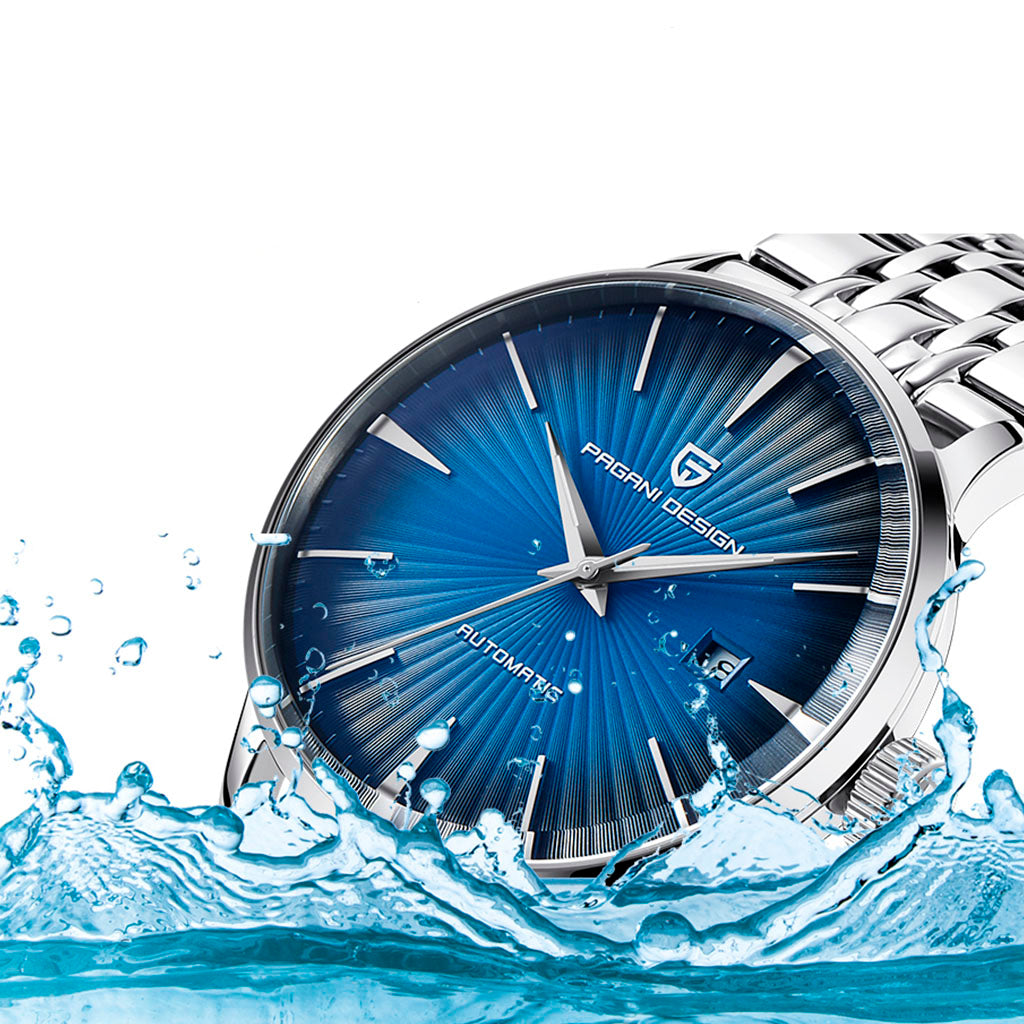 O relógio Pagani Design Lugano é resistente à água até 30 metros, proporcionando confiança e tranquilidade durante atividades aquáticas. A coroa do Pagani Design Virtus Lumen é rosqueada para garantir uma vedação completa e segura. Consulte o manual de uso e garantia para obter mais informações.