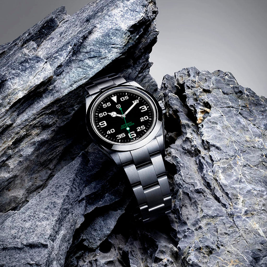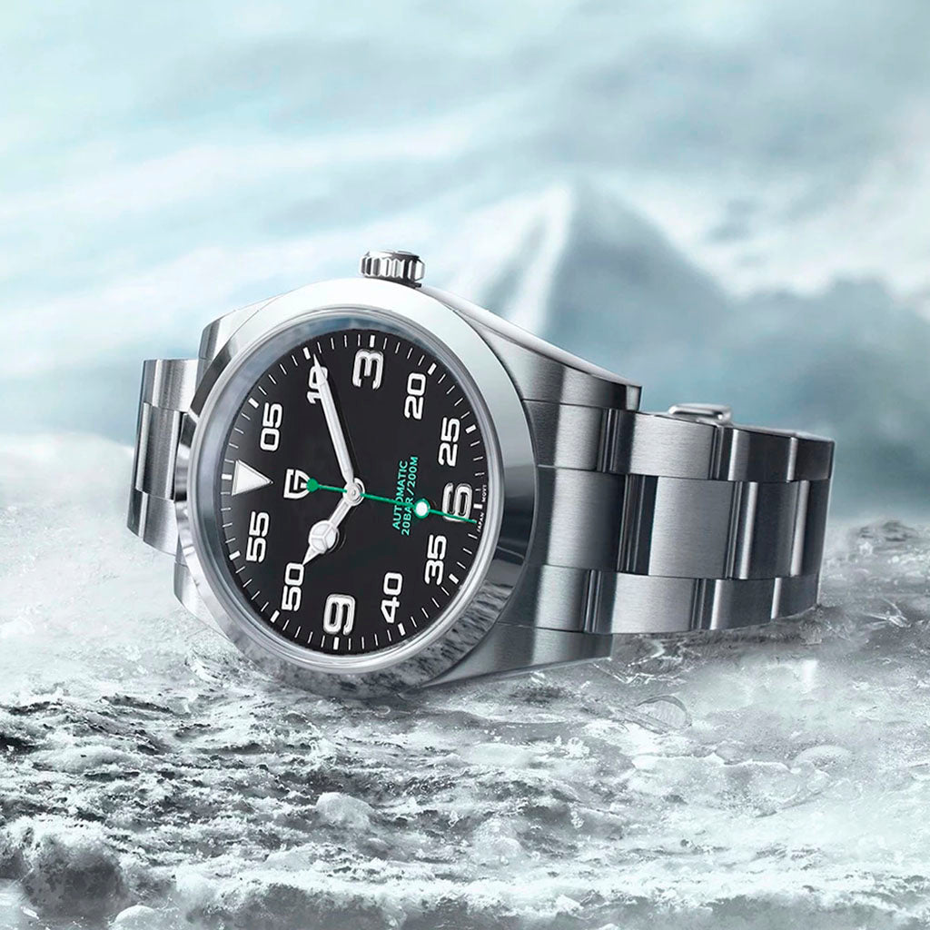 Das Seiko NH35-Uhrwerk ist ein automatisches Präzisionskaliber, bekannt für seine herausragende Genauigkeit und absolute Zuverlässigkeit. Im Pagani Design Weissgold Silver Black sorgt es für eine exakte Zeitmessung und höchste Beständigkeit.