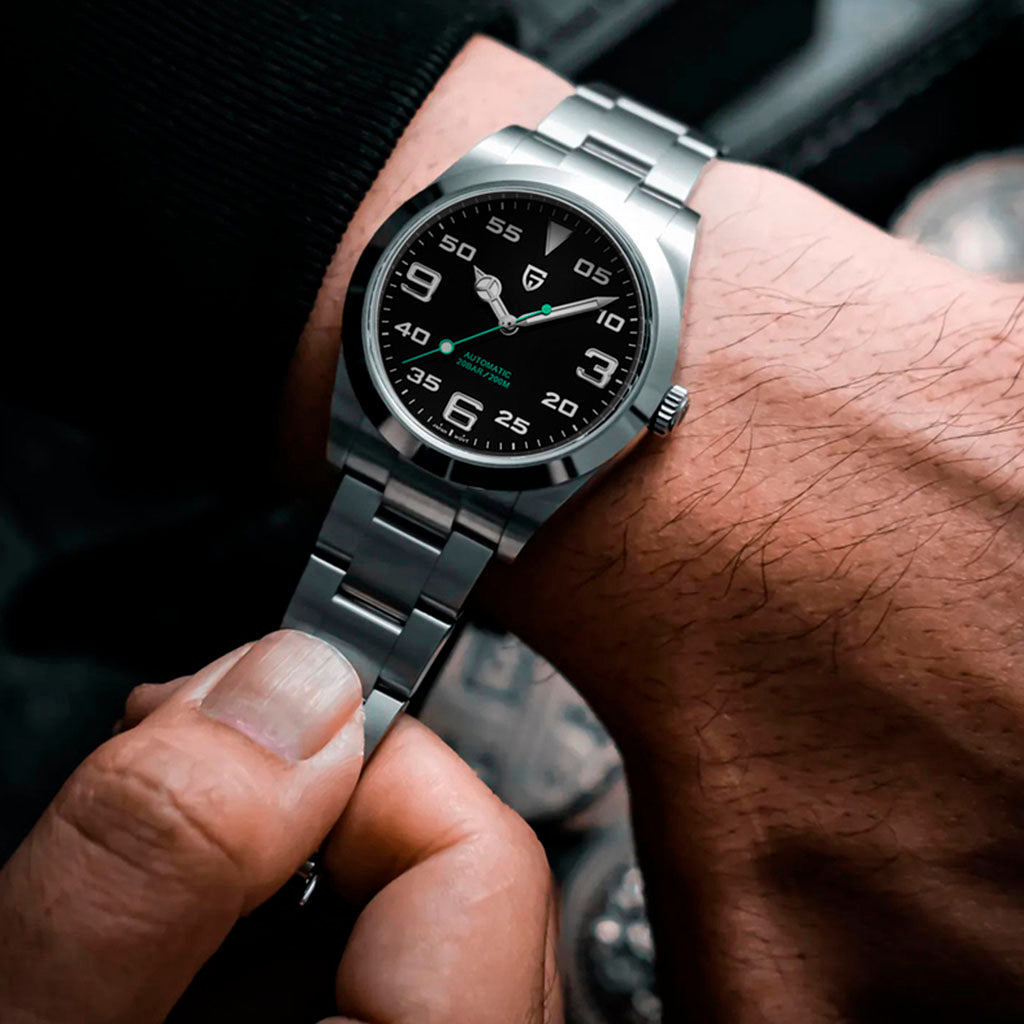 Das Armband des Pagani Design Weissgold Silver Black ist sorgfältig aus Edelstahl 316L gefertigt und vereint Eleganz mit Widerstandskraft. Es bietet unvergleichlichen Tragekomfort und das Gefühl, eine Uhr zu tragen, die am Handgelenk kaum spürbar ist.