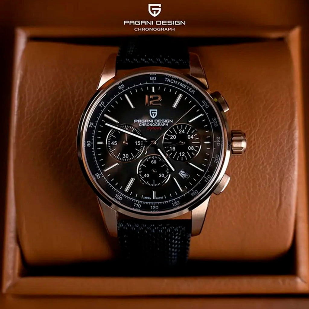 Adquira seu Pagani Design Zermatt Black Gold Sport Edition em nosso site e receba nossa embalagem. Este relógio é a escolha perfeita para quem procura qualidade e sofisticação. Invista no Pagani Design Zermatt Black Gold Sport Edition e descubra a excelência em cada detalhe.