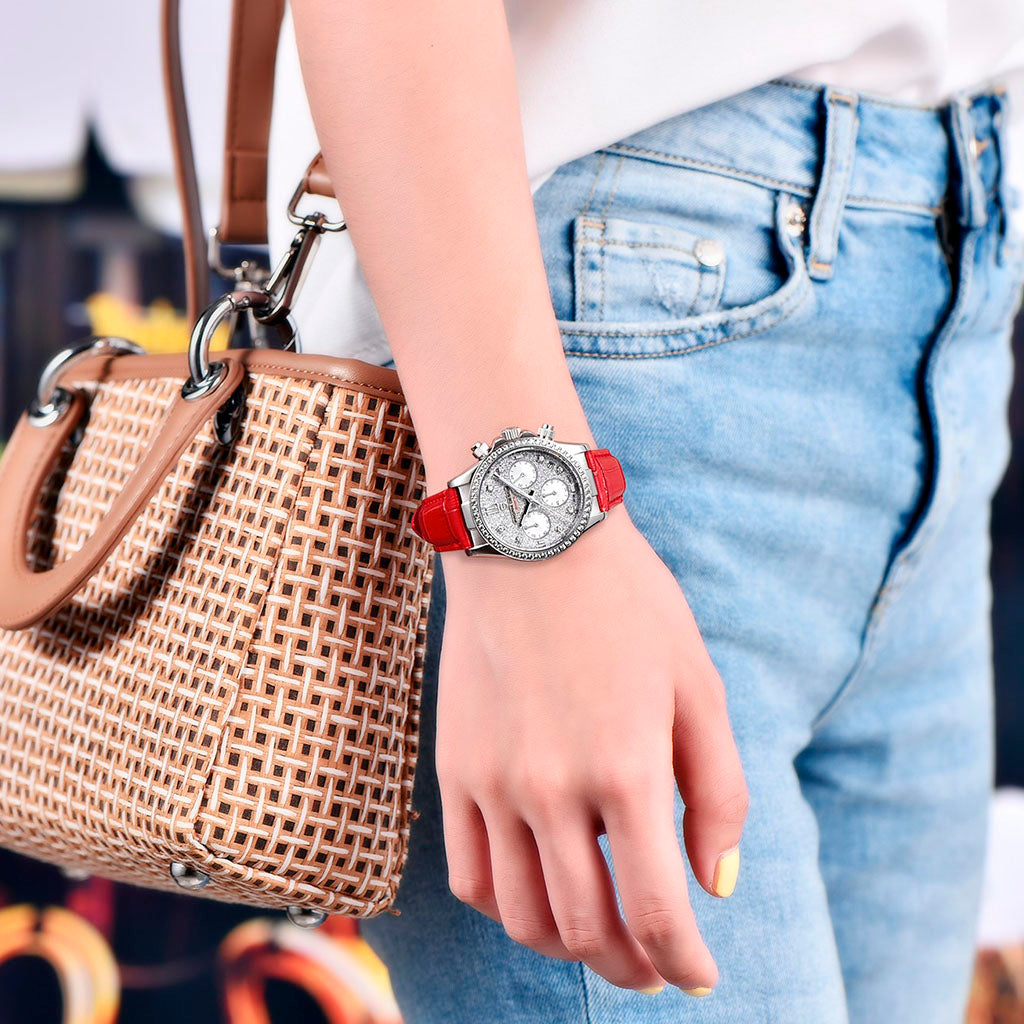 Adquira seu Relógio Feminino Pagani Design Daisy Red e receba uma embalagem exclusiva, perfeita para presentear ou guardar com elegância. Invista na sofisticação e qualidade de um relógio que reflete o seu estilo.