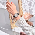 Equipado com cristal de safira sintético, este relógio feminino garante resistência a riscos e uma transparência impecável, mantendo seu brilho e elegância ao longo do tempo.